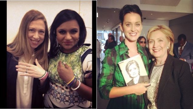 Meanwhile, other celebrities spent their Fridays chilling with badass politicians and their badass daughters. Katy Perry attended Hillary Clinton's book signing and offered to write a song for her presidential campaign, while Mindy Kaling hung out with Chelsea Clinton at a Google event for girls in coding. Both were generous enough to instagram these encounters for us plebes. [E!]