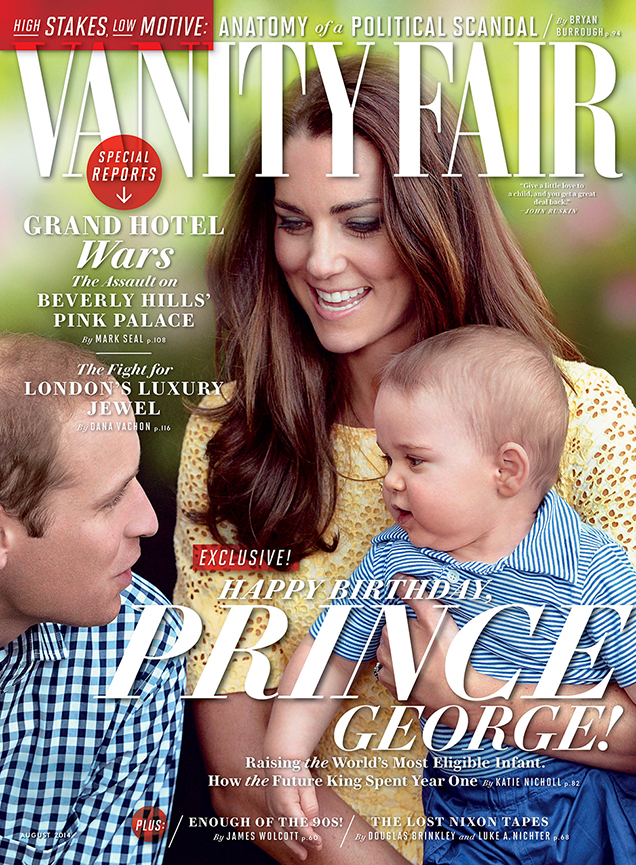 Vanity Fair is obsessed with the royals (and the Kennedys, and Marilyn Monroe) so it was just a matter of time before Tiny Prince George landed a cover story. You don't find an exclusive interview with the teething one-year-old, however. According to a press release, contributor Katie Nicholl will spill details on "George's colicky beginnings," finding the new nanny, and more: