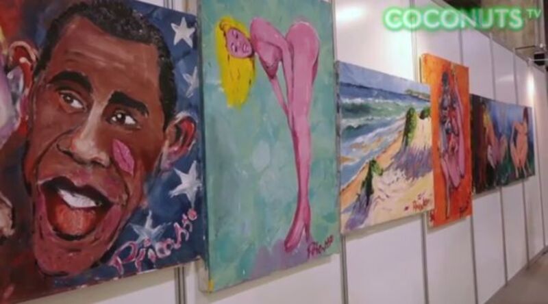 This eyewitness news report by Coconuts TV comes to us via Digg. "Pricasso" uses his penis, scrotum, and occasionally buttcheeks to complete his various projects, which is surely an impressive technical feat. (If you'd like a view that's a little more up close and personal, try his Vimeo page. I cannot stress enough how very, very unsafe for work it is. Seriously, DO NOT CLICK if you are at work, unless you work somewhere like Gawker Media, in which case go right ahead and share it freely with your work pals.) "I find it very meditative," he explained.
