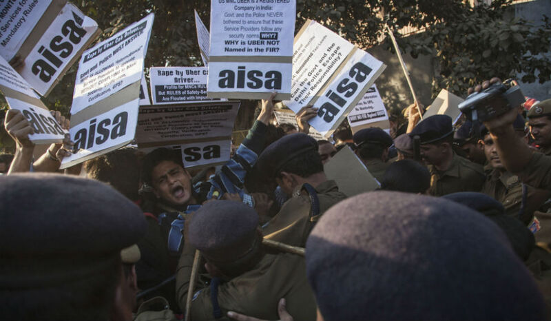 Students swarmed the New Delhi police headquarters to protest inadequate attention by the Indian government to sexual violence against women. Rape incidents in the capital have been on the rise, even as Indian lawmakers doubled prison sentences for rapists in the wake of the horrific 2012 fatal gang rape of a young New Delhi woman, whose death stirred an international outcry.