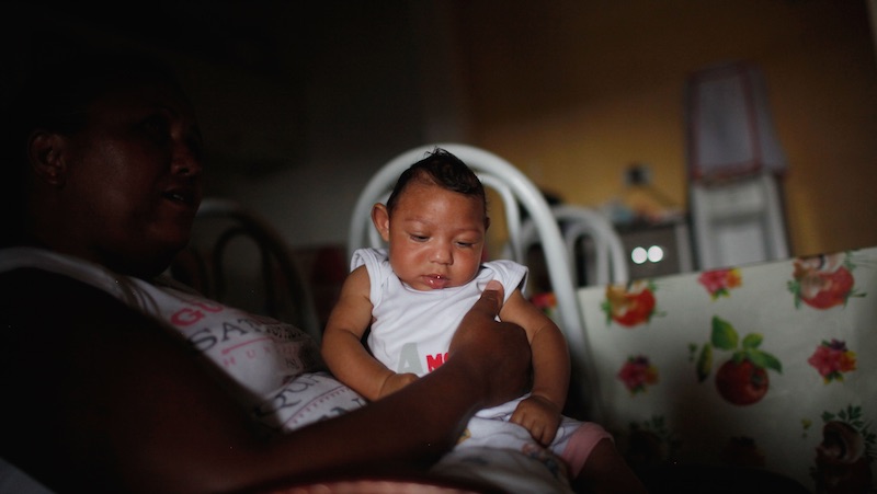 Image: Alice Vitoria Gomes Bezerra, 3-months-old, who has microcephaly, is held by her mother Nadja Cristina Gomes Bezerra sits on January 31, 2016 in Recife, Brazil. Via Getty.
