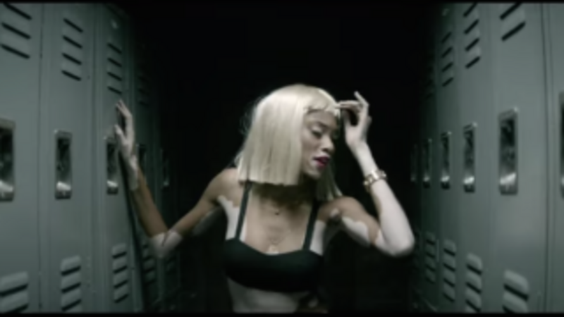 Y: "Guts Over Fear" is a song where Eminem reflects on his career losses and rap as an emotional outlet: "How many times can I say the same thing different ways that rhyme?" he rhymes, reading my mind. It's very hard, Em. Sia's my favorite part of the song, and the video gets a thumbs up because Chantelle (aka Winnie Harlow) from the current cycle of America's Next Top Model looks good lip syncing Sia's vocals in a blonde bob. Tyra taught her. [Complex]