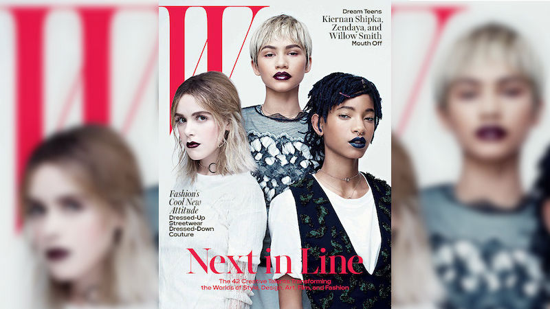 W assembled a trio of cool teens for its April cover: Zendaya, Mad Men’s Kiernan Shipka and my ruler Willow Smith, who all personify what the magazine describes as “a low-key attitude.”