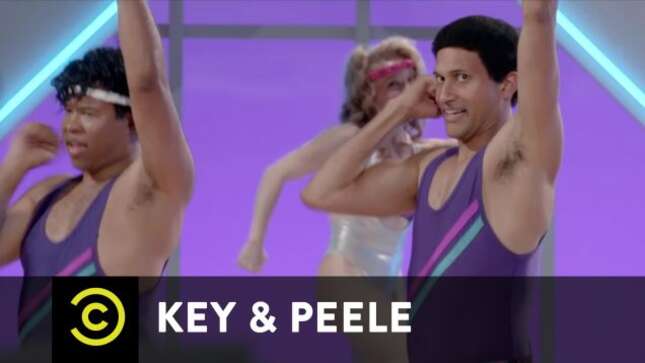 At least these don’t look as bad as The FIRM videos from the mid to late 80s. Plenty of thick gold chains, too-short shorts (for the men), too much hair (for everyone—big hair was the style!), and questionable techniques for some of the moves. But at least the women used larger weights.
