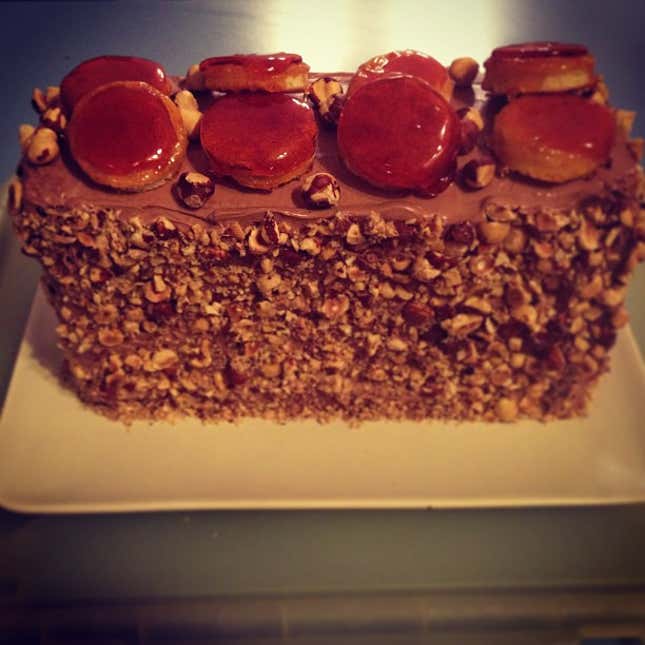 Because I've already begun whoring myself out (though I have not yet made either the pinata cake or pinata cookie) I'll show you the cake I made for my last dinner party, it's a traditional Hungarian cake called Dobos torte. 7 layers of vanilla sponge cake, filled and topped with chocolate buttercream and a layer of…